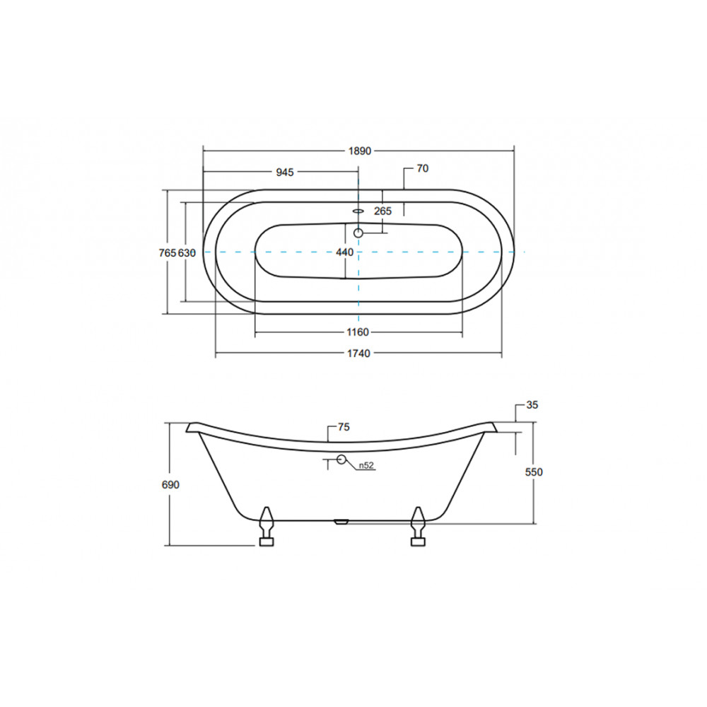 Країна виробник: Польща;Колір: білий;Тип продукції: Ванна;Колекція: AMELIA;Матеріал: санітарний композит;Тип монтажу: вільностоячі;Довжина, см: 190;Ширина, см: 77;Форма: ретро;Висота, см: 69;