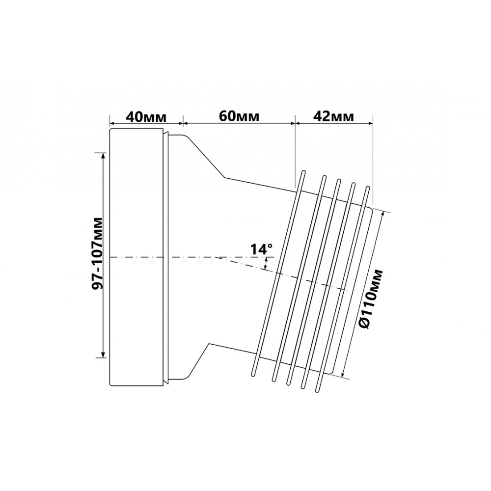 Опис Коліно для унітазу під кутом 14 з ущільнювачем L-125 mm HC39