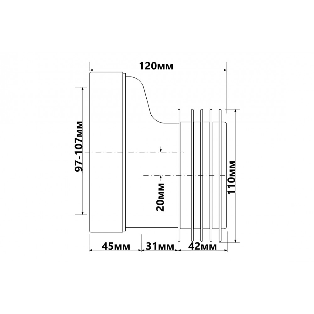 Опис Коліно-підключення до унітаза зміщене з ущільнювачем L-120 мм WC-CON4