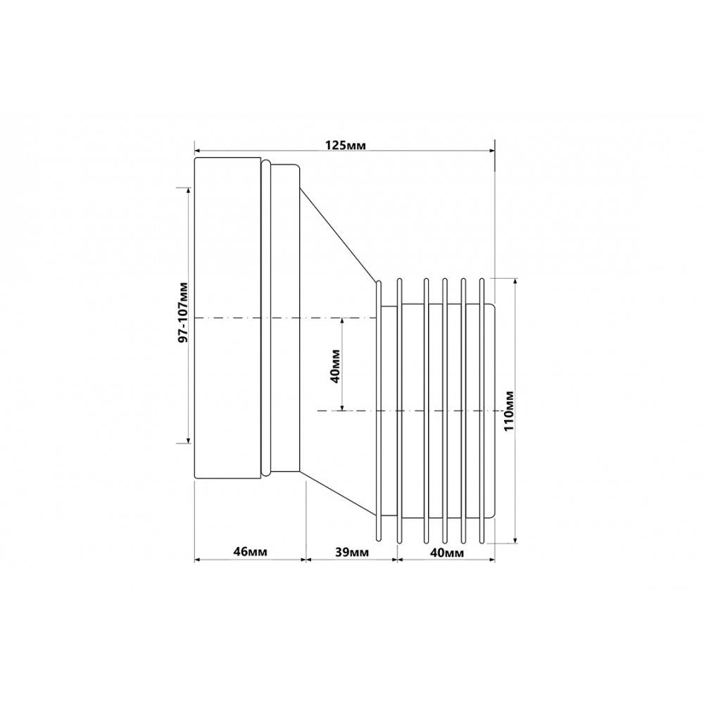 Опис Коліно для унітазу 40 мм з ущільнювачем L-125 мм HC38