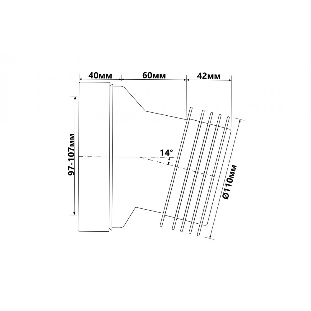 Опис Коліно для унітазу під кутом 14 з ущільнювачем L-125 mm HC39