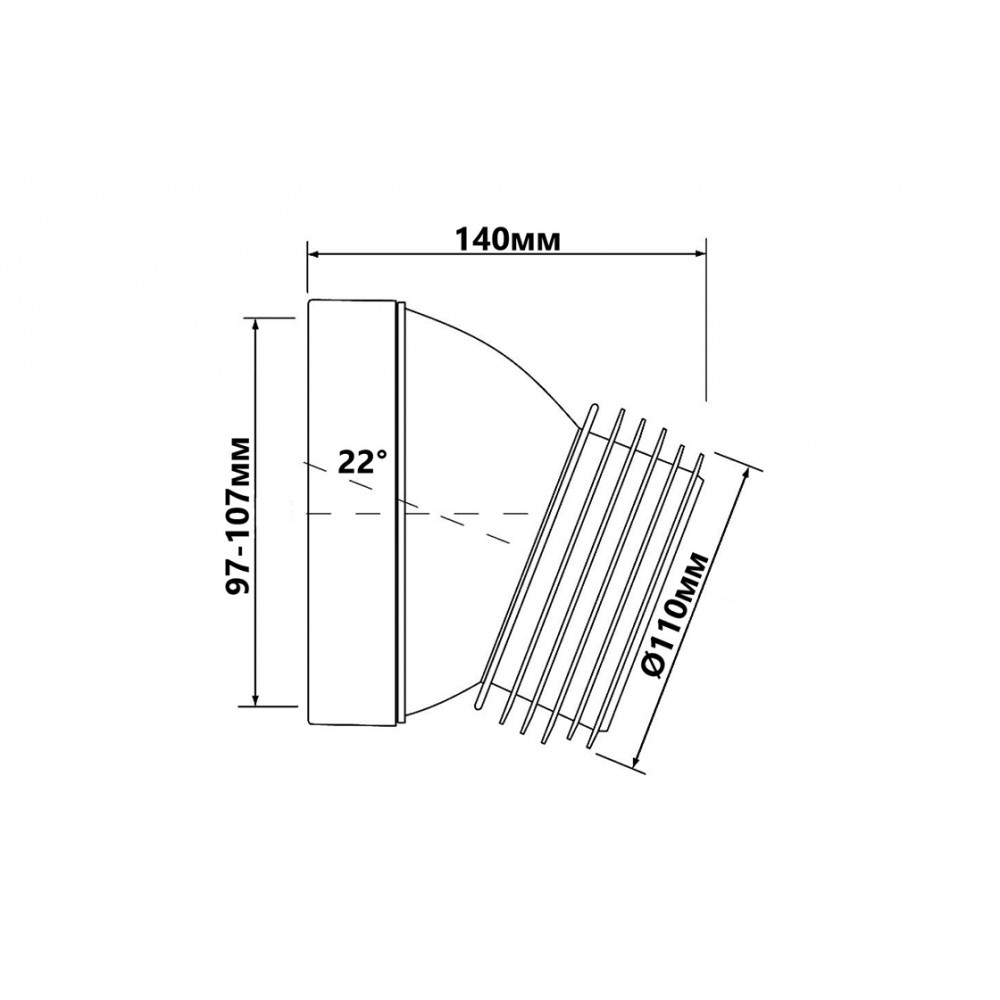 Опис Коліно для унітазу під кутом 22 з ущільнювачем L-125 mm HC39-22