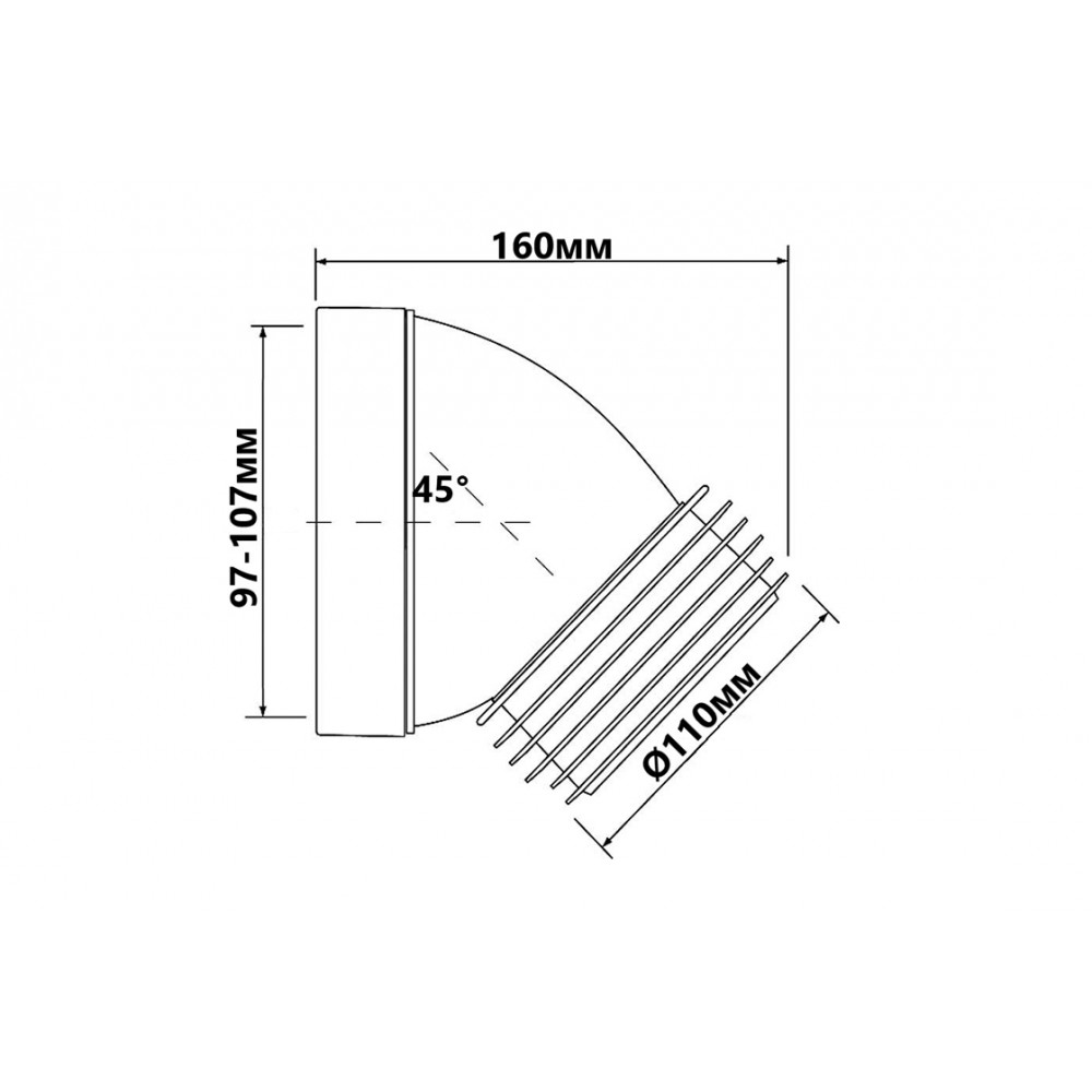 Коліно для унітазу під кутом 45 з ущільненням L-160 mm WC-CON16