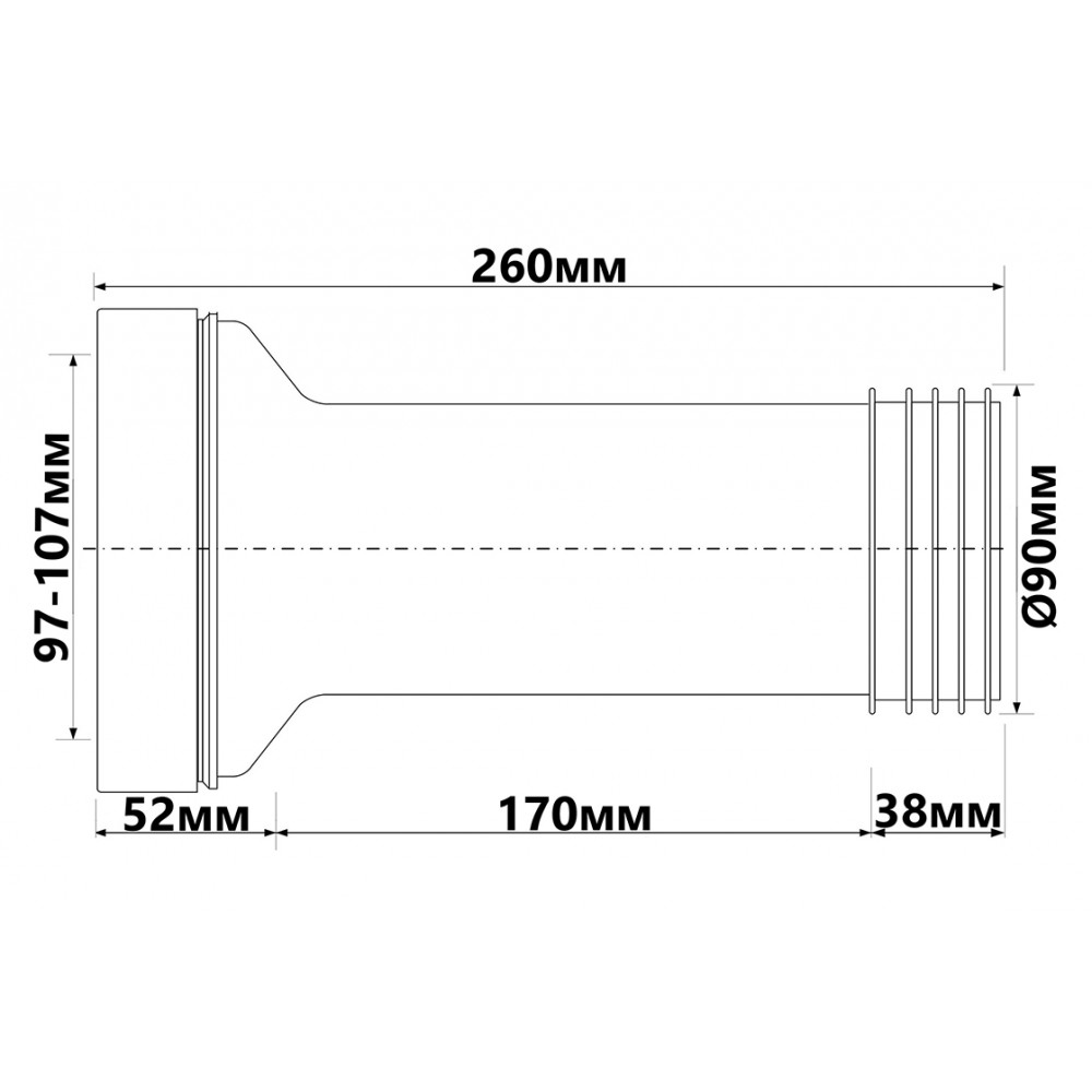 Опис Коліно-підключення до WC L-260 mm з ущільнювачем (довге) WC-CON2B
