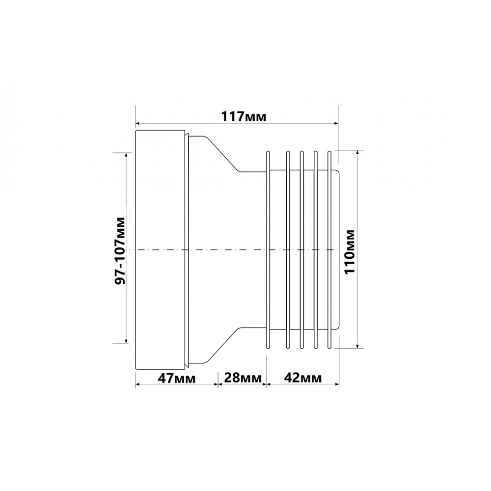 Коліно-підключення до WC з ущільнювачем L-117 мм WC-CON1 (#8473-01)