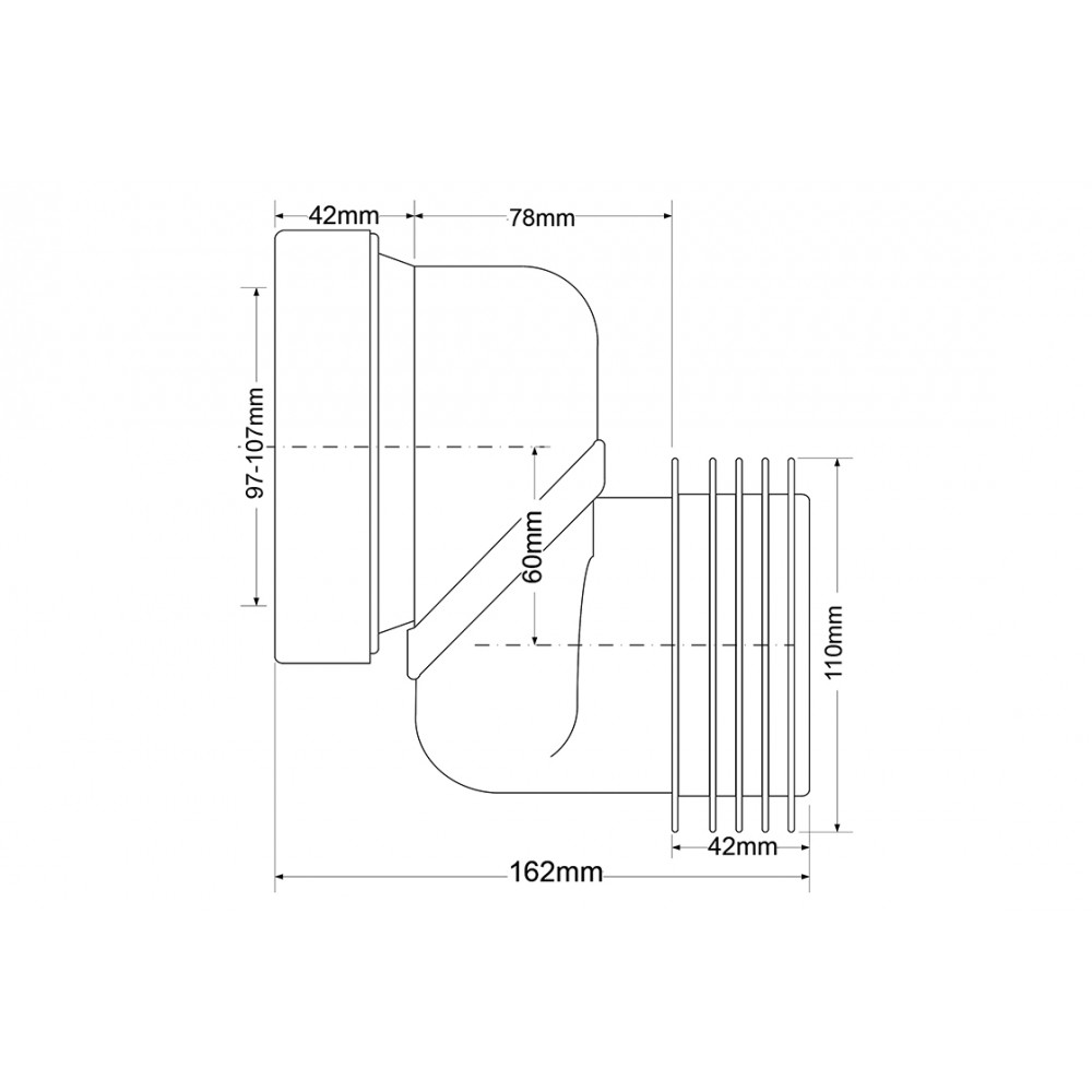 Опис Коліно-підключення до WC зі зміщеним центром 60 мм з ущільнювачем WCLO-6