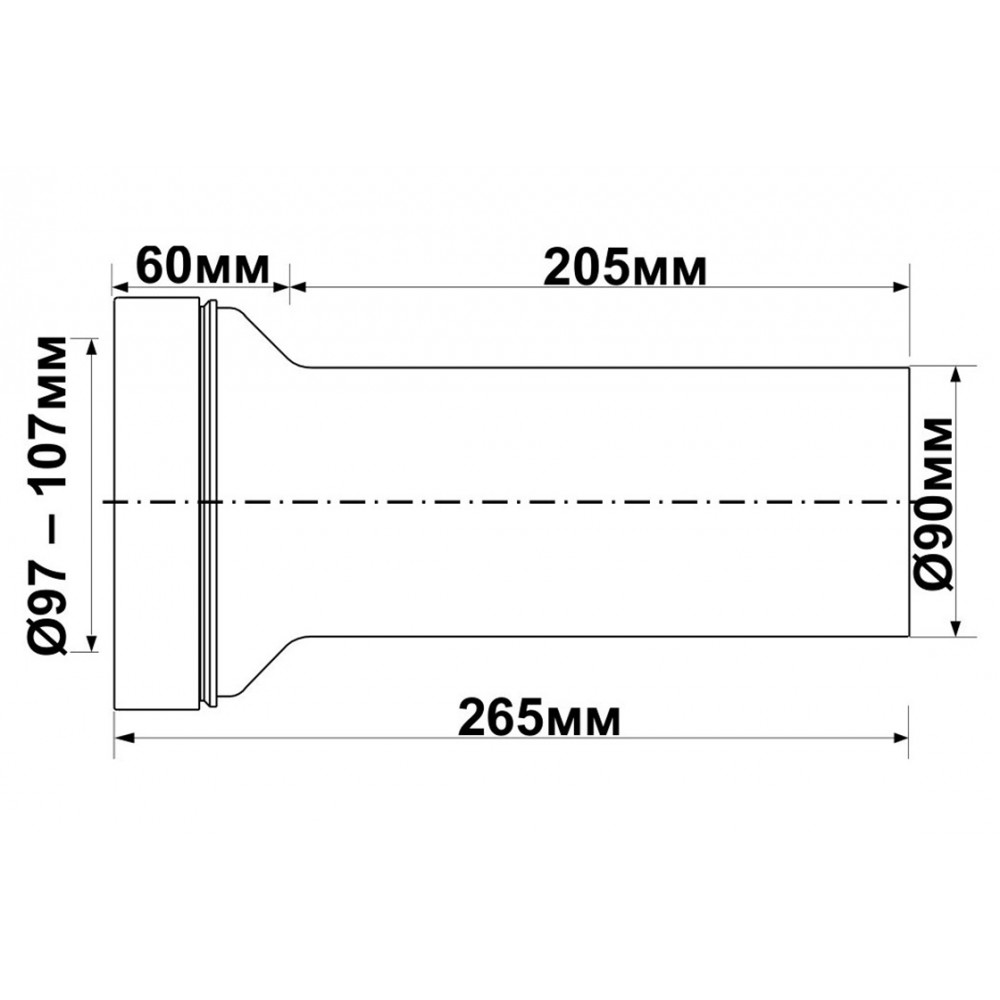Опис Коліно-підключення еластичне до WC: просте/90 мм/з ущільнювачем/L-265 мм WC-CON2BL-NOSEAL