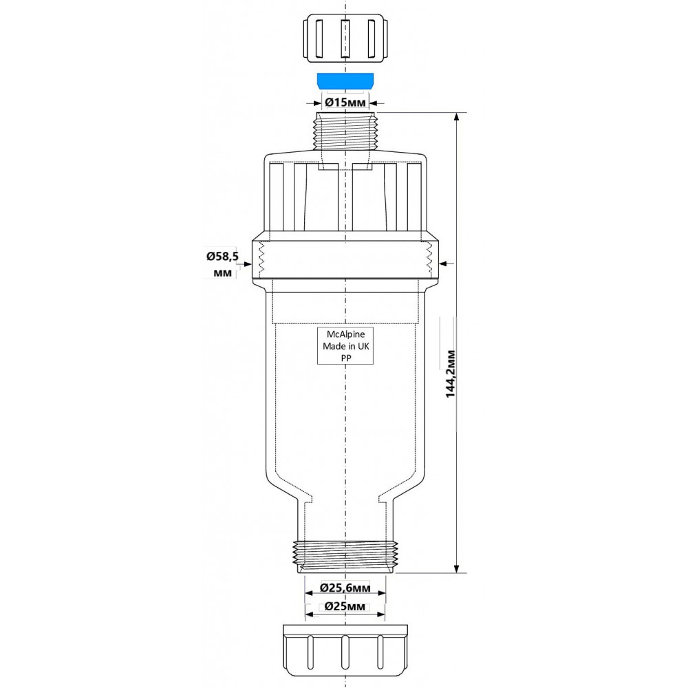 Опис Сифон MACTUNE-1-25 "сухий" з самозакриваючим клапаном 15*25 мм