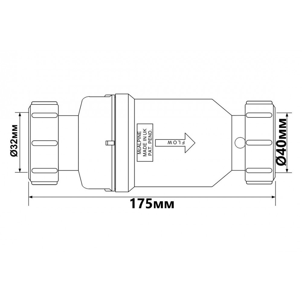 Сифон із зворотним клапаном 32 х40 мм MACVALVE-12 (#8922-01)
