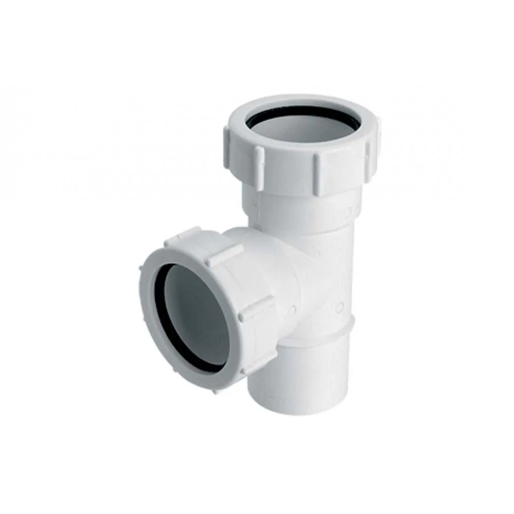 Трійник пластиковий d40 з двома гайками та виходом 40F-WH (#8929-01)