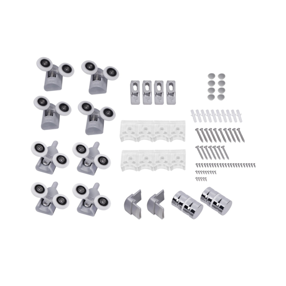 Комплектація: Подвійні ролики, ручки, комплект кріплень, глухе скло, скляні двері, профіль.