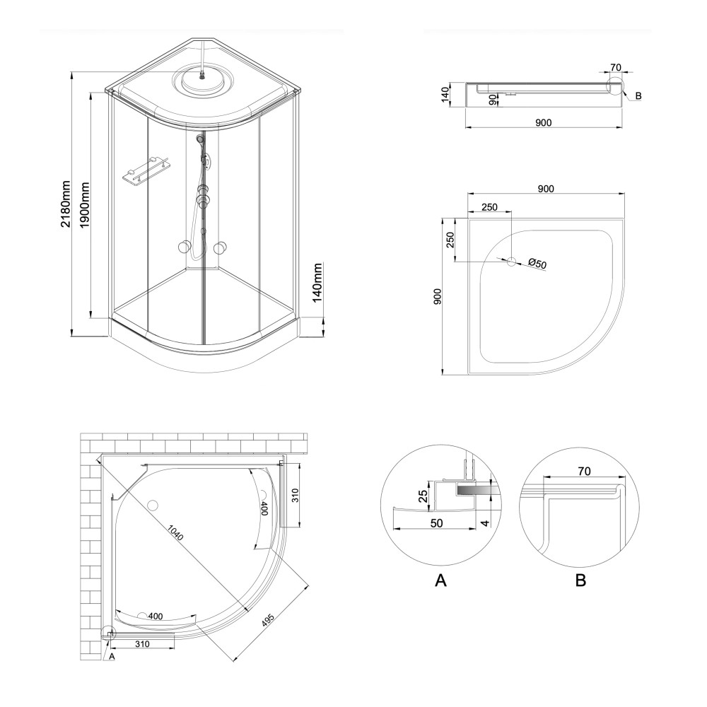 Габаритні розміри виробу (ШхГхВ), мм: 900х900х2130; 900х900х140