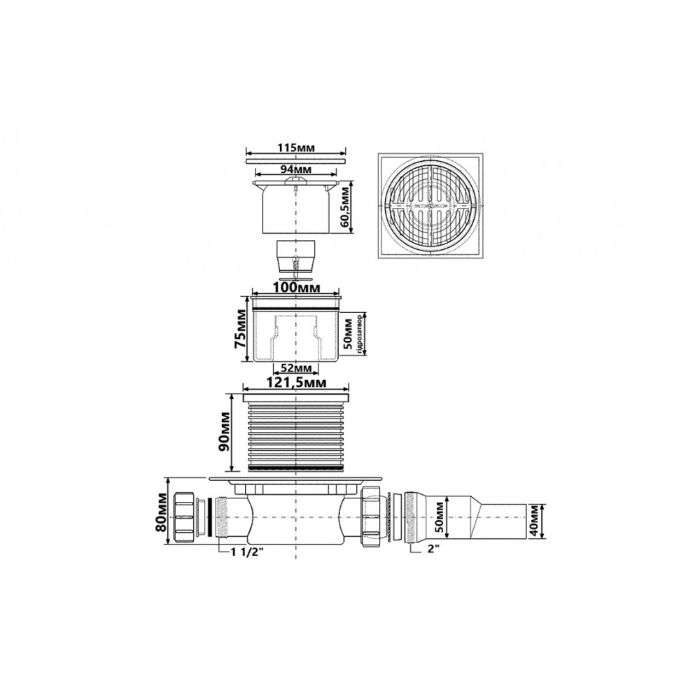 Опис Злив у підлогу 40/50 мм HCFG3