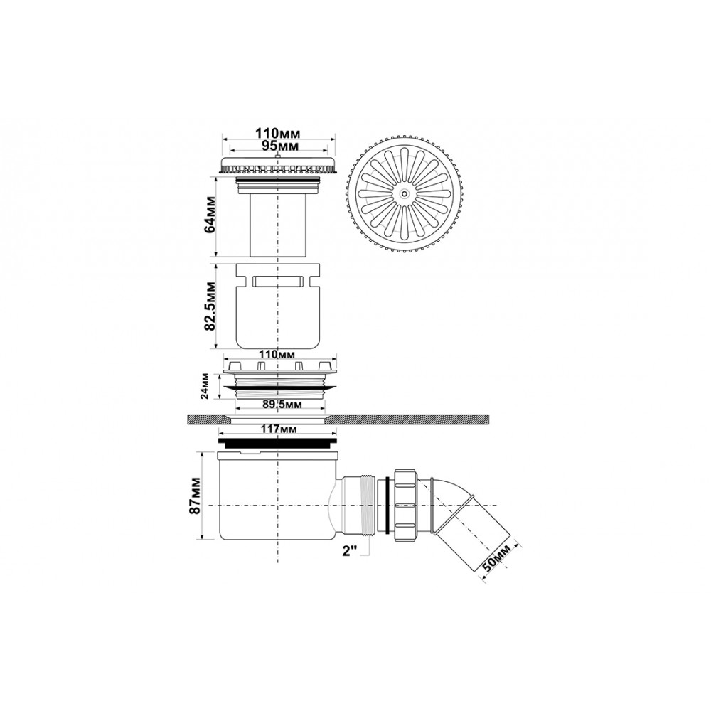 Опис Сифон для зливу в підлогу (50 мм) 45 л/хв CD-HC2750L-NG-PB