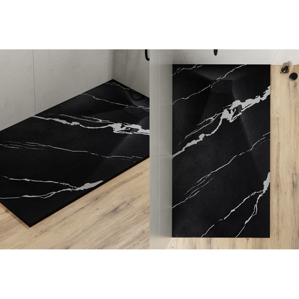 Опис Піддон прямокутний VEXO MARBLE 160х90 чорний + сифон