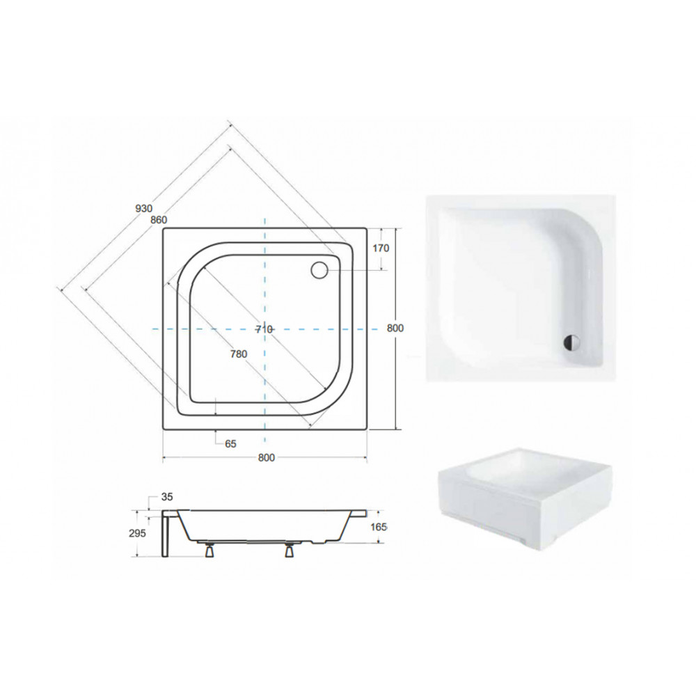 Опис Піддон квадратний ARES 80х80х15/29,5 см + ноги