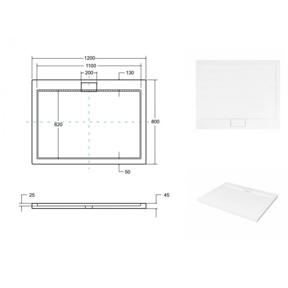 Опис Піддон прямокутний AXIM UltraSlim 120x80 + сифон
