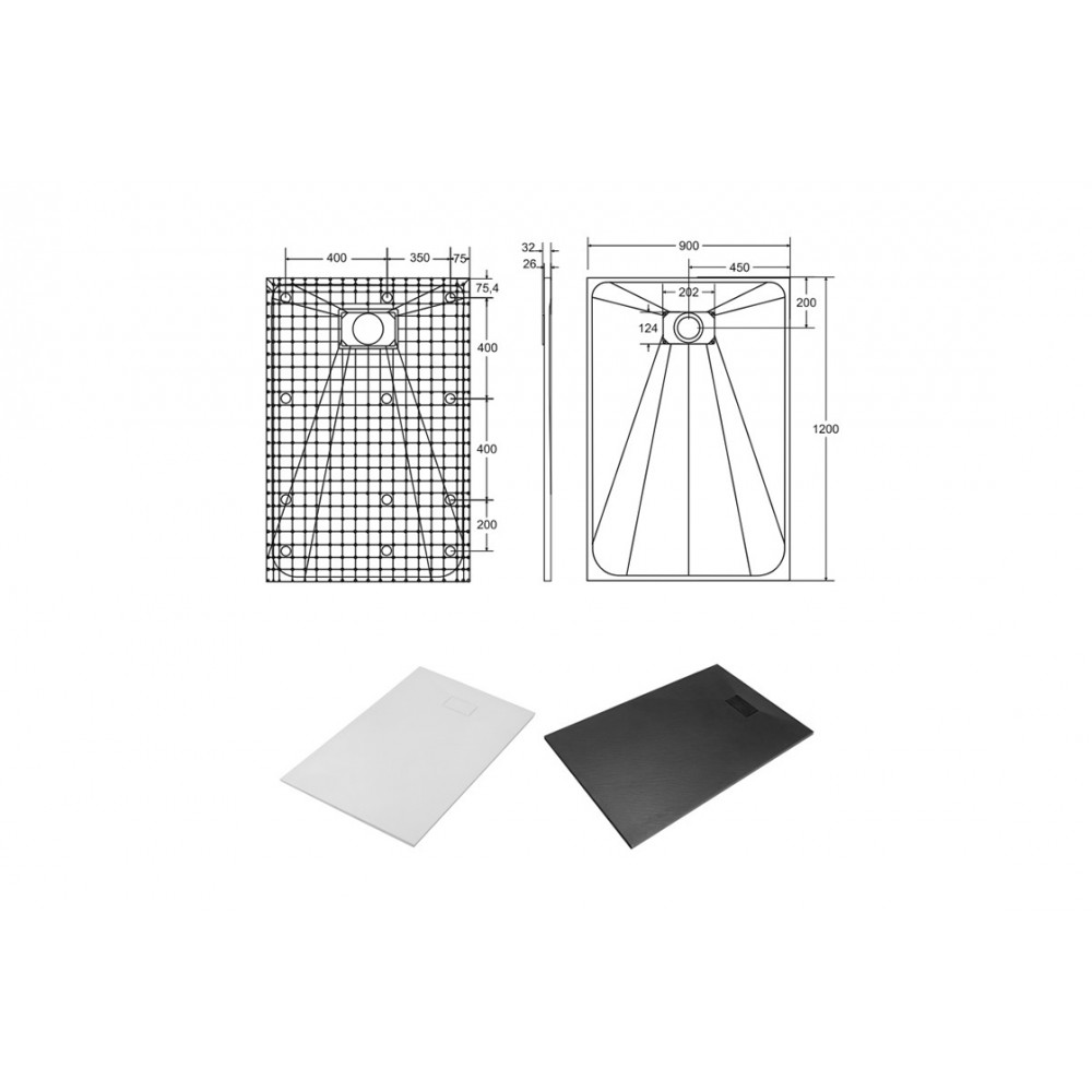 Опис Піддон прямокутний VEXO 120х90 білий + сифон