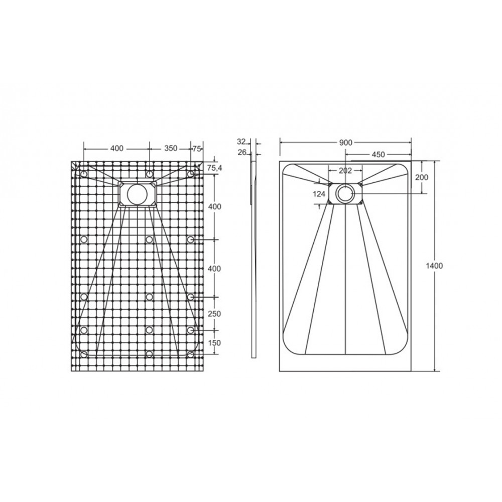 Опис Піддон прямокутний VEXO 140х90 чорний + сифон