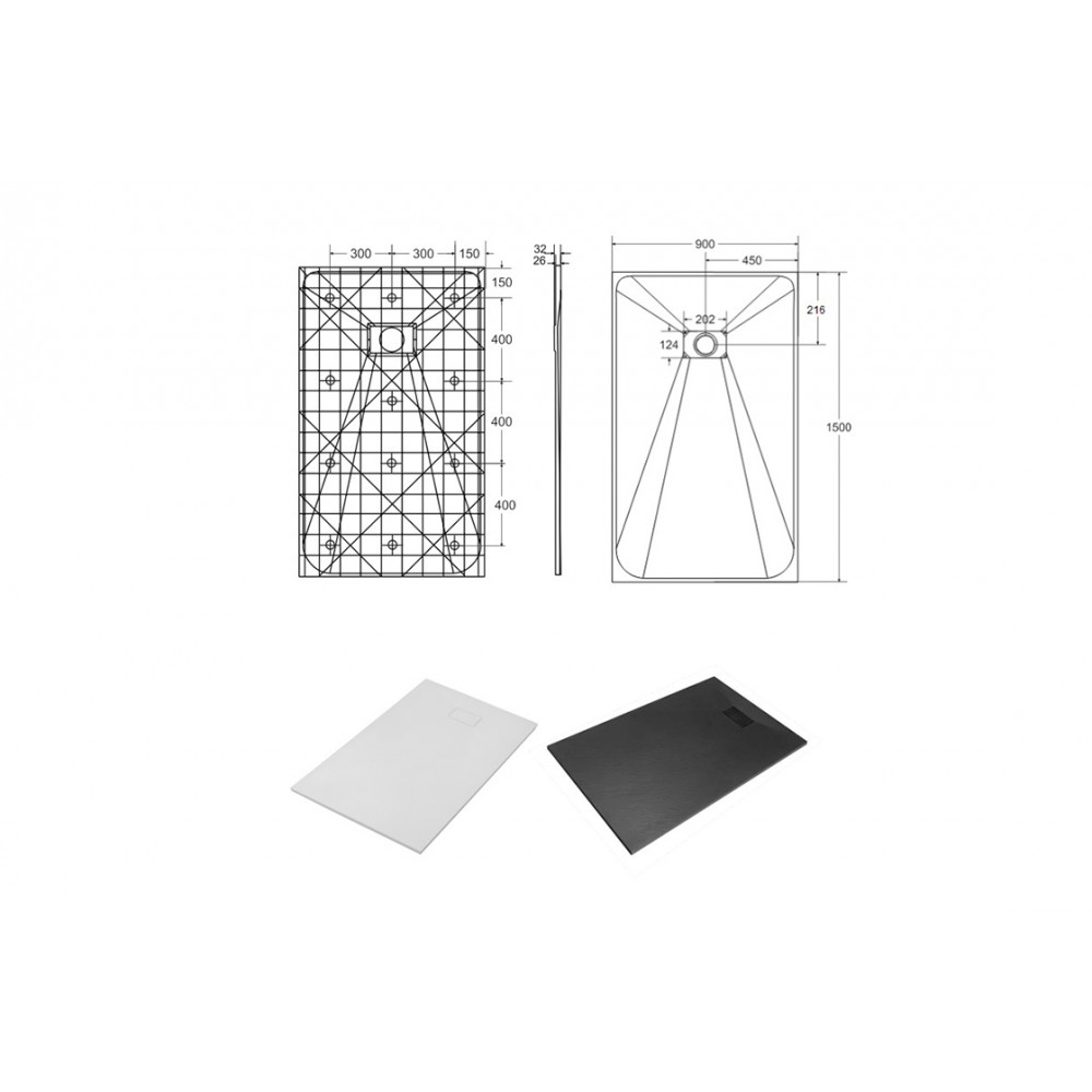 Опис Піддон прямокутний VEXO 150х90 білий + сифон
