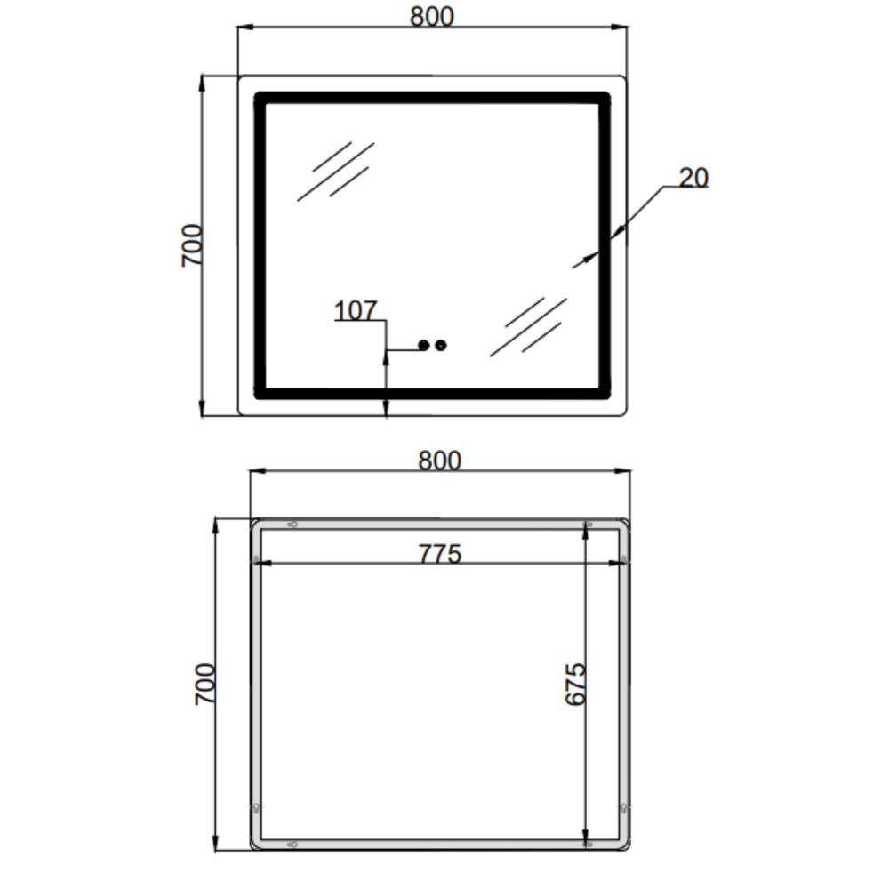 Опис Дзеркало настінне Mideya (MI2) 800х700 мм, прямокутне, з LED-підсвіткою Touch, антизапотіванням, димером, рег. яскравості Qtap