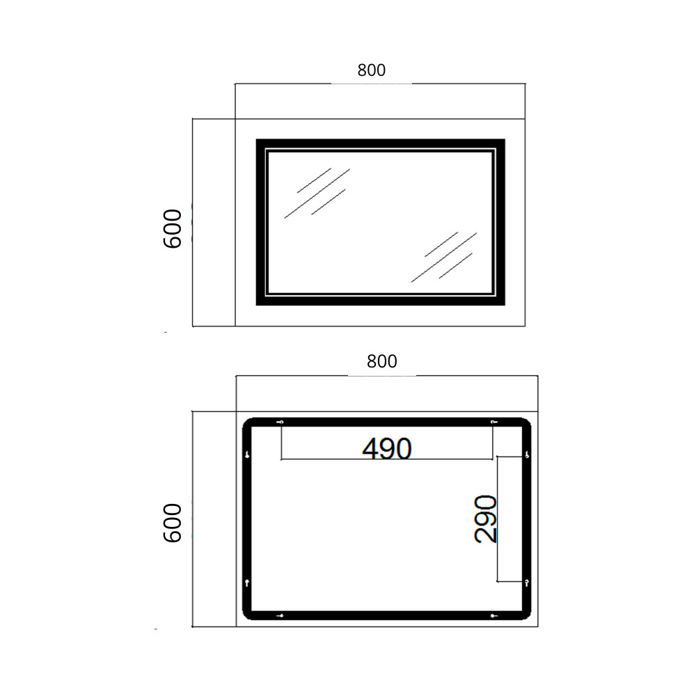 Опис Дзеркало настінне Cardinal (CA1) 800х600 мм, прямокутне, з LED-підсвіткою Touch, антизапотіванням, димером, рег. темп. кольору (3000-6500K), Reverse Qtap