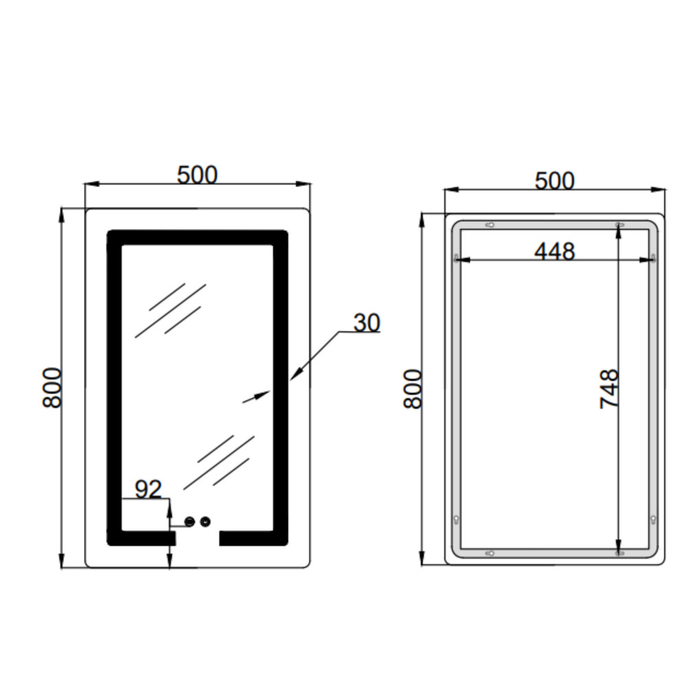 Опис Дзеркало настінне Kubis (KU2) 500х800 мм, прямокутне, з LED-підсвічуванням Touch, антизапотіванням, диммером, рег. яскравості Lidz