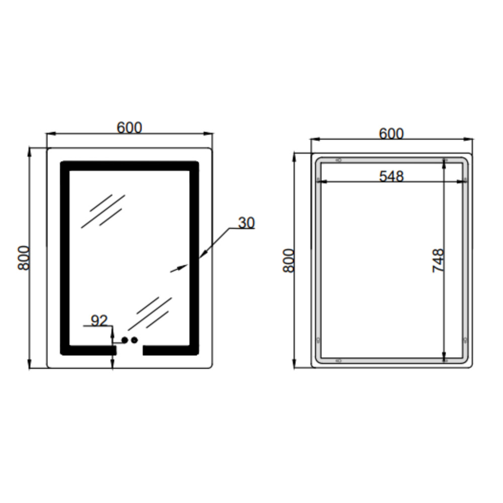 Характеристики Дзеркало настінне Kubis (KU2) 600х800 мм, прямокутне, з LED-підсвічуванням Touch, антизапотіванням, димером, рег. яскравості Lidz