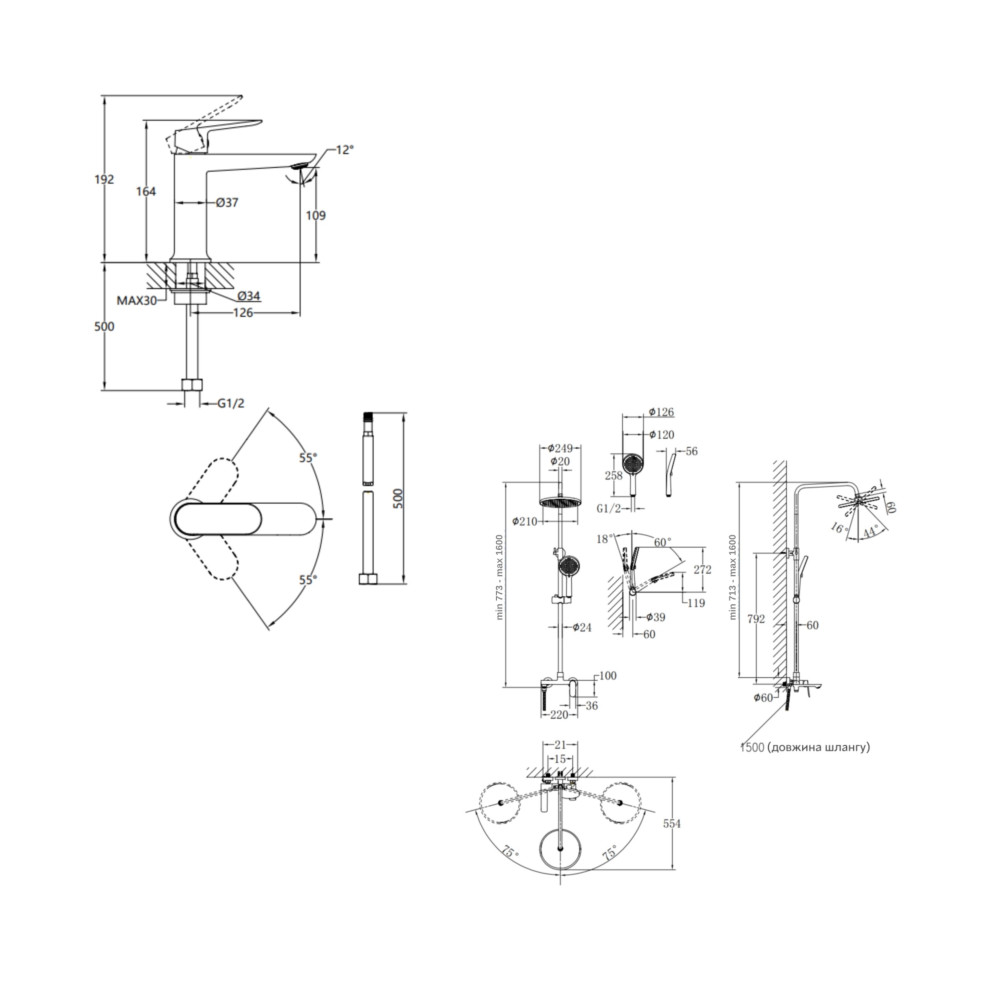 | Вага брутто, кг | 1,166 – змішувач для раковини; 5,16 - душова система |