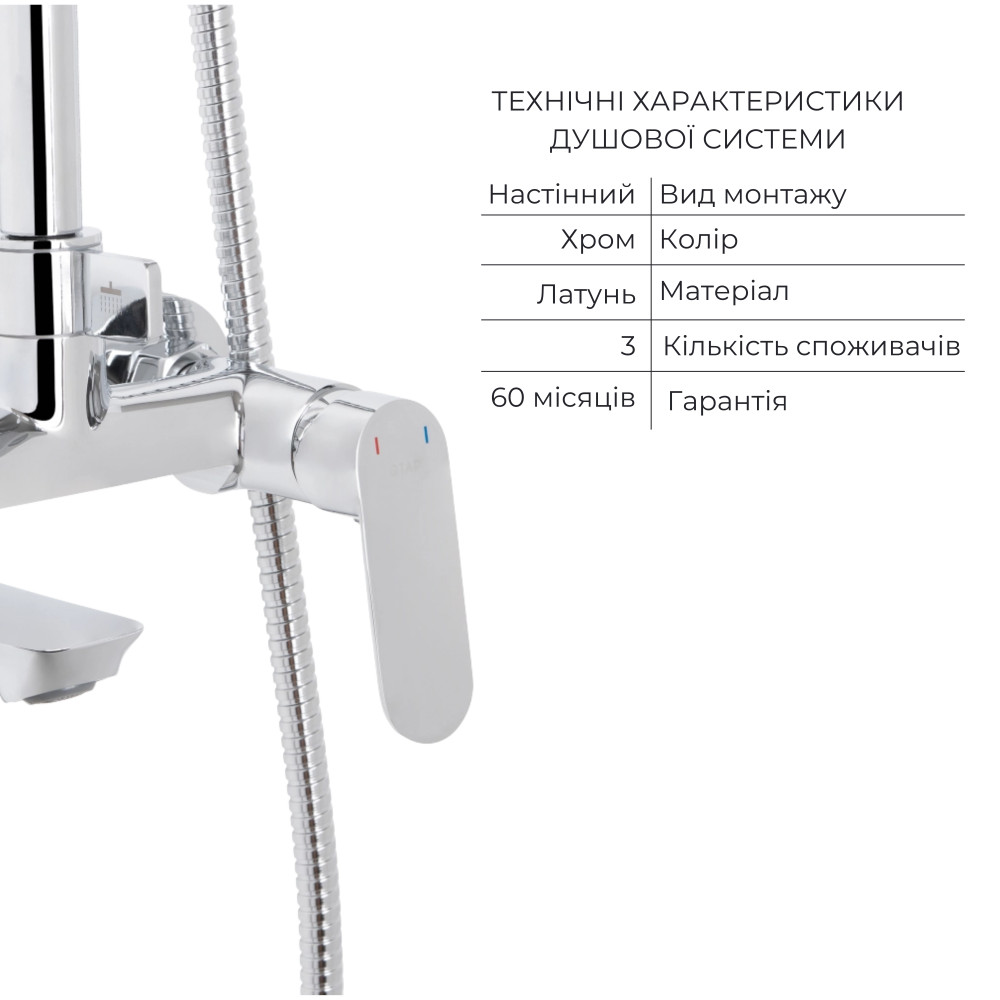 Характеристики Акційний набір для душової кімнати Qtap Evia Змішувач для раковини QTEVI2701CRM47576 Chrome+Qtap Evia Душева система універсальна QTEVI111CRM47583 Chrome
