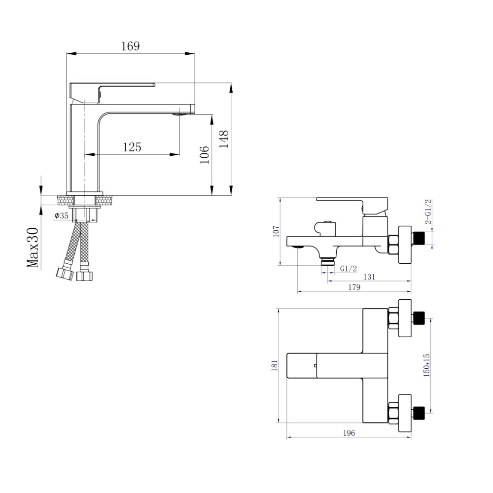 | Вага нетто, кг | 1,336 – змішувач для раковини; 1,6 - змішувач для ванни |