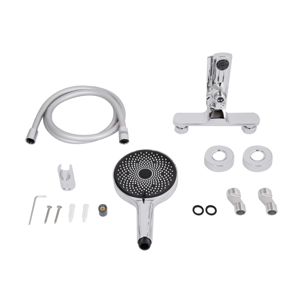 | Комплектація | Змішувач, лійка для ручного душу, душовий шланг, кронштейн для ручного душу, кріплення. |