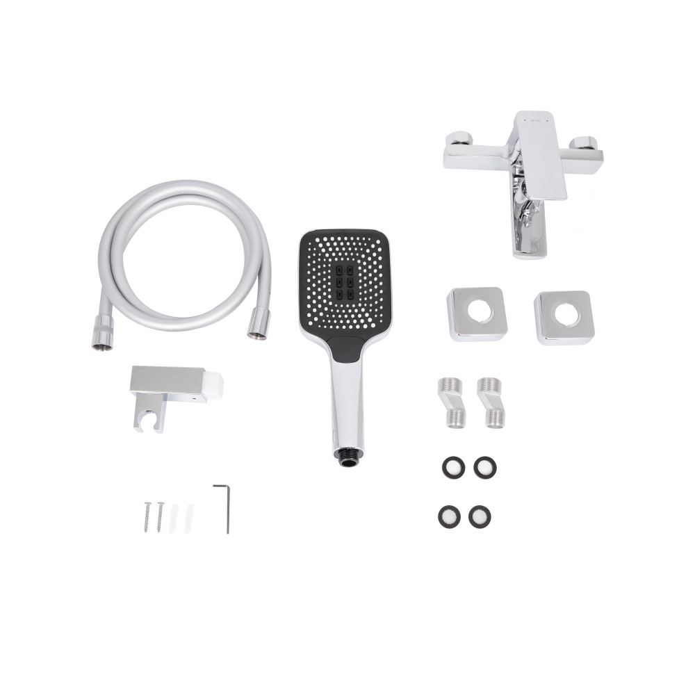Комплектація Змішувач, лійка для ручного душу, душовий шланг, кронштейн для ручного душу, кріплення.