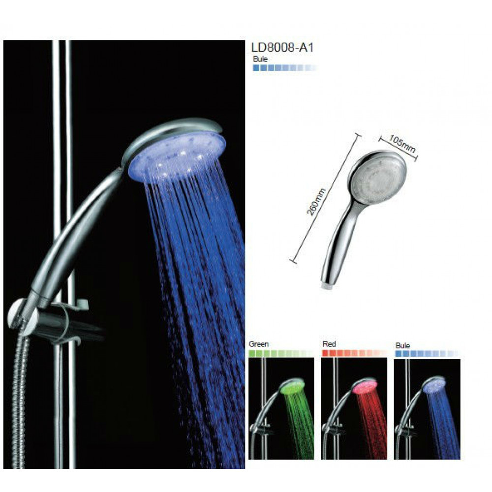 Країна виробник: Польща;Тип поверхні: глянцева;Колір: хром;Матеріал: пластик;Колекція: LED;Тип продукції: Ручний душ (лійка);Тип монтажу: універсальний;З термостатом: ні;Форма: кругла;