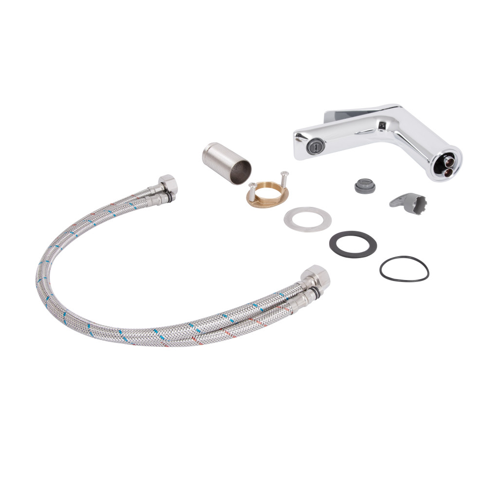 Комплектація: Змішувач, гнучкий підвід, кріпильні деталі.