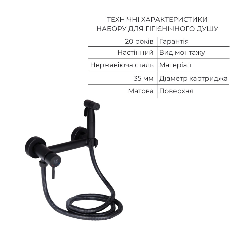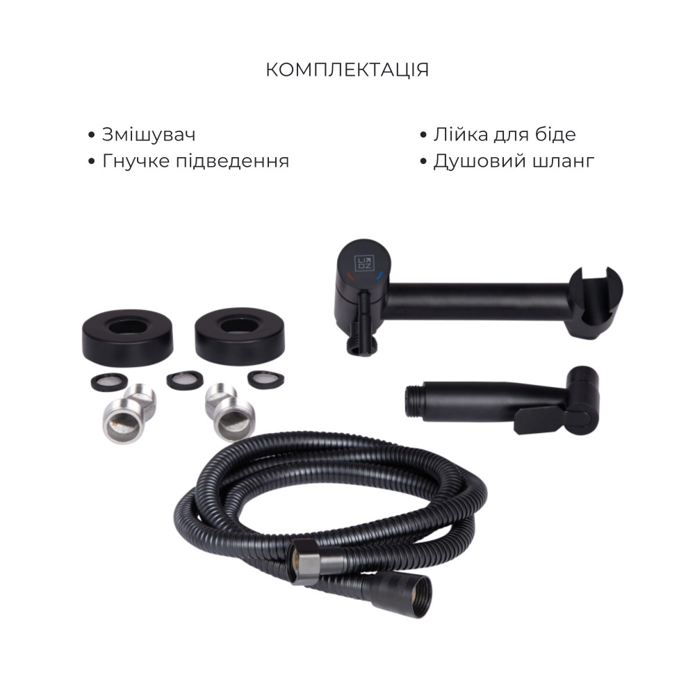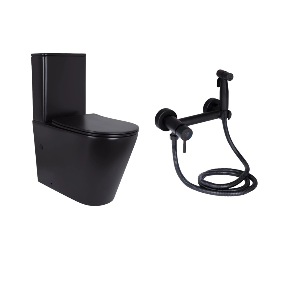 Комплект 2 в 1: підлоговий унітаз Qtap Scorpio Matt Black QT14226088AMB + набір гігієнічного душу Lidz Aria Black LDARI110BLA43394 (#12688-01)