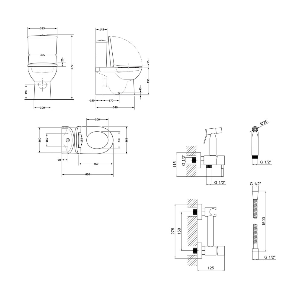 | Вага нетто, кг | 50 – унітаз: 1,300 – набір для гігієнічного душу |