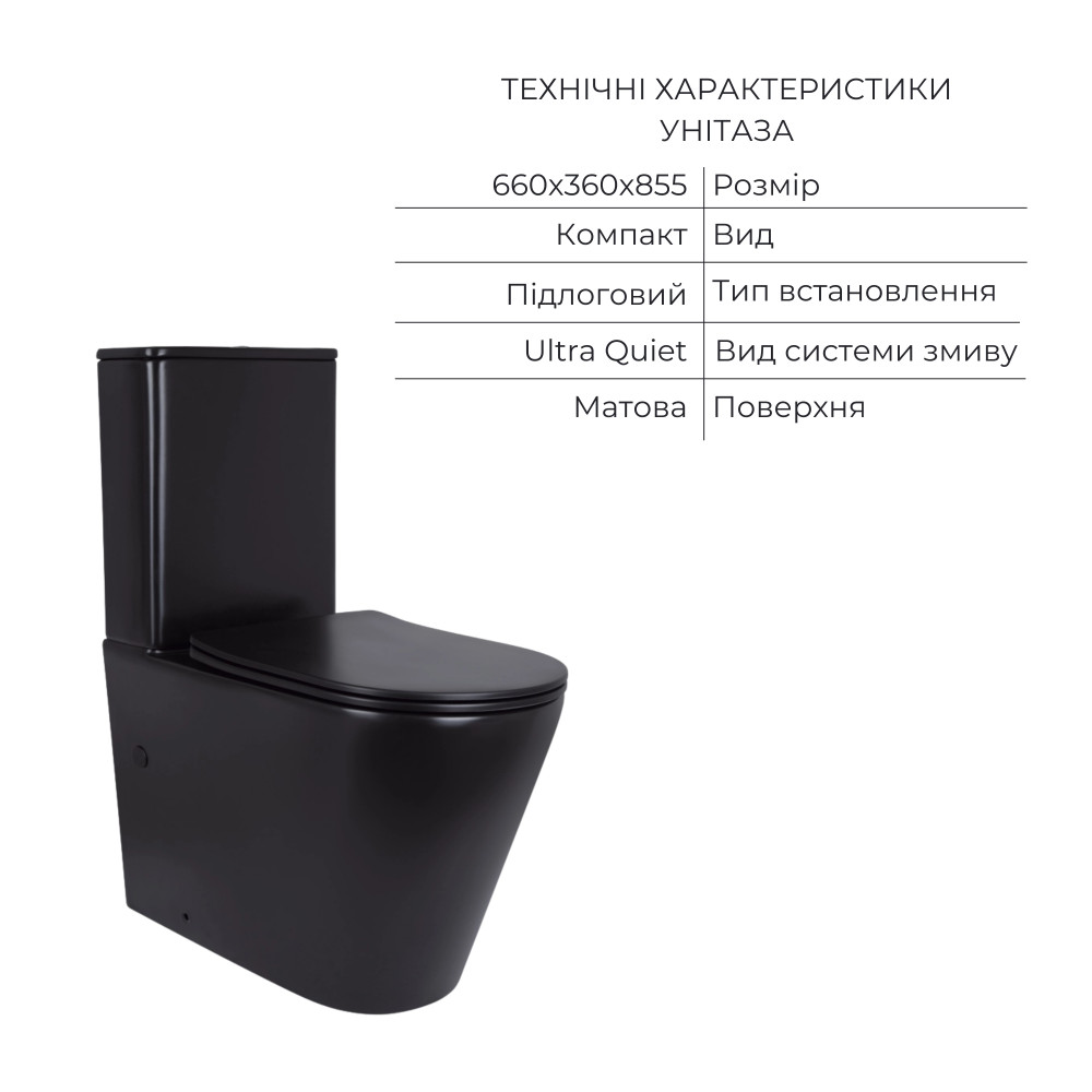 Опис Комплект 2 в 1: підлоговий унітаз Qtap Scorpio Matt Black QT14226088AMB + набір гігієнічного душу Lidz Aria Black LDARI110BLA43394
