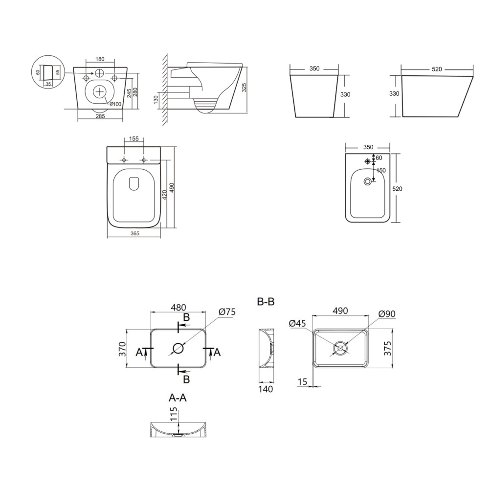 | Комплектація | Унітаз (QT17332303ASSG), біде (QT17551303GSG), раковина (QT17116069SG) |