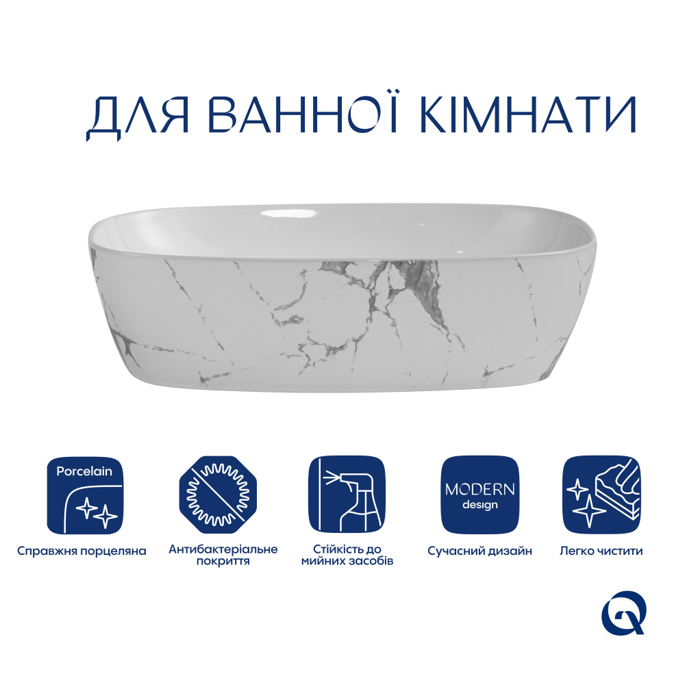 Опис Раковина накладна Robin 500х380х140 мм, Marble, прямокутна, з донним клапаном QT04116302MR Qtap