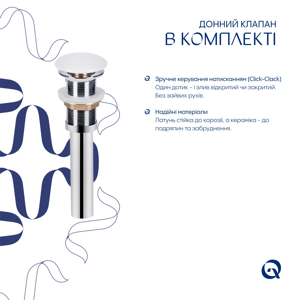 | Гарантія | 27 років — раковина; 2 роки — донний клапан |