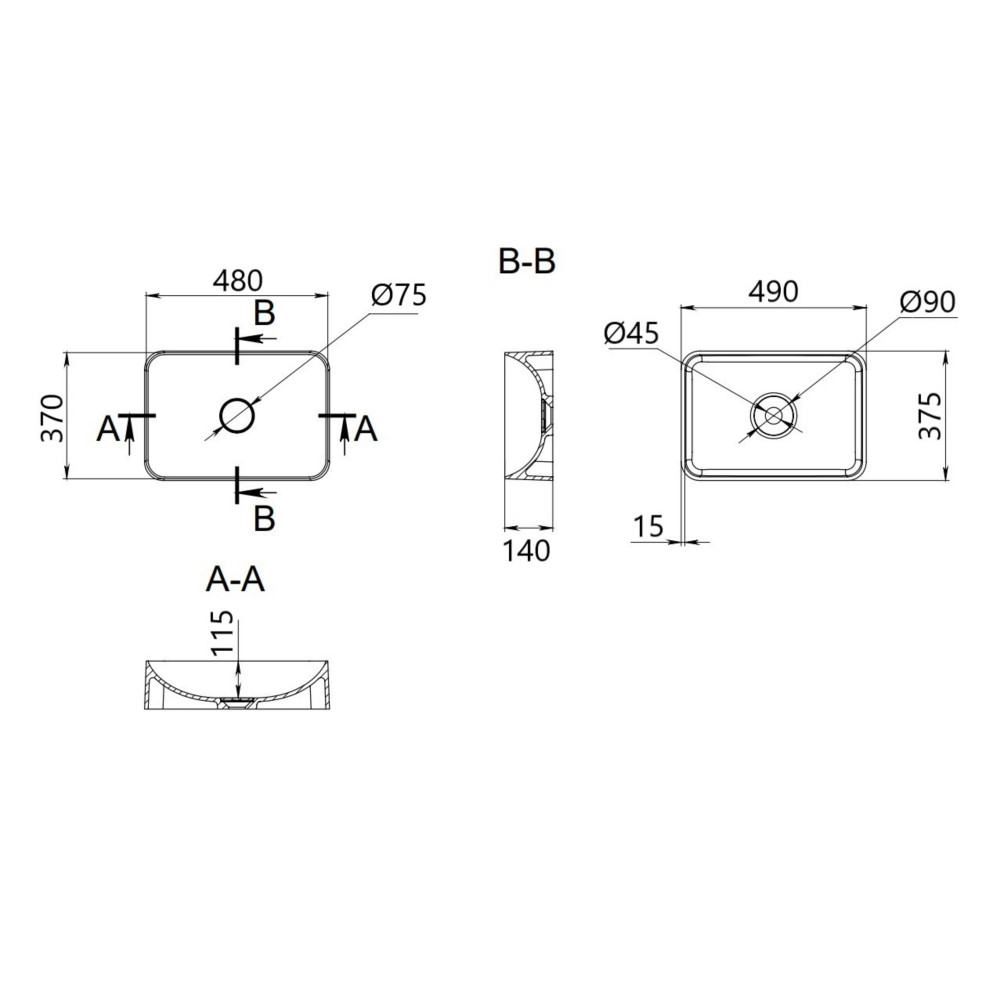 Характеристики Раковина накладна Tern 480x370x135 мм, Beige, прямокутна, з донним клапаном QT17116069SB Qtap