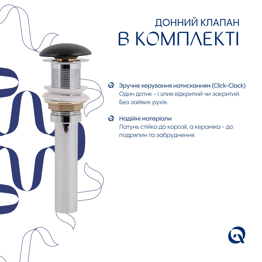 | Додаткові характеристики | Керамічний донний клапан. |