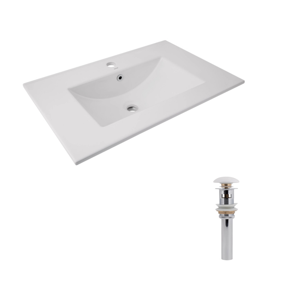 Комплект Albatross: Прямокутна врізна меблева раковина вирізняється збільшеною шириною, що забезпечує зручність у використанні. Біла поверхня гармонує з інтер'єром, а донний клапан Pop-up PU02O гарантує надійну роботу зливу.