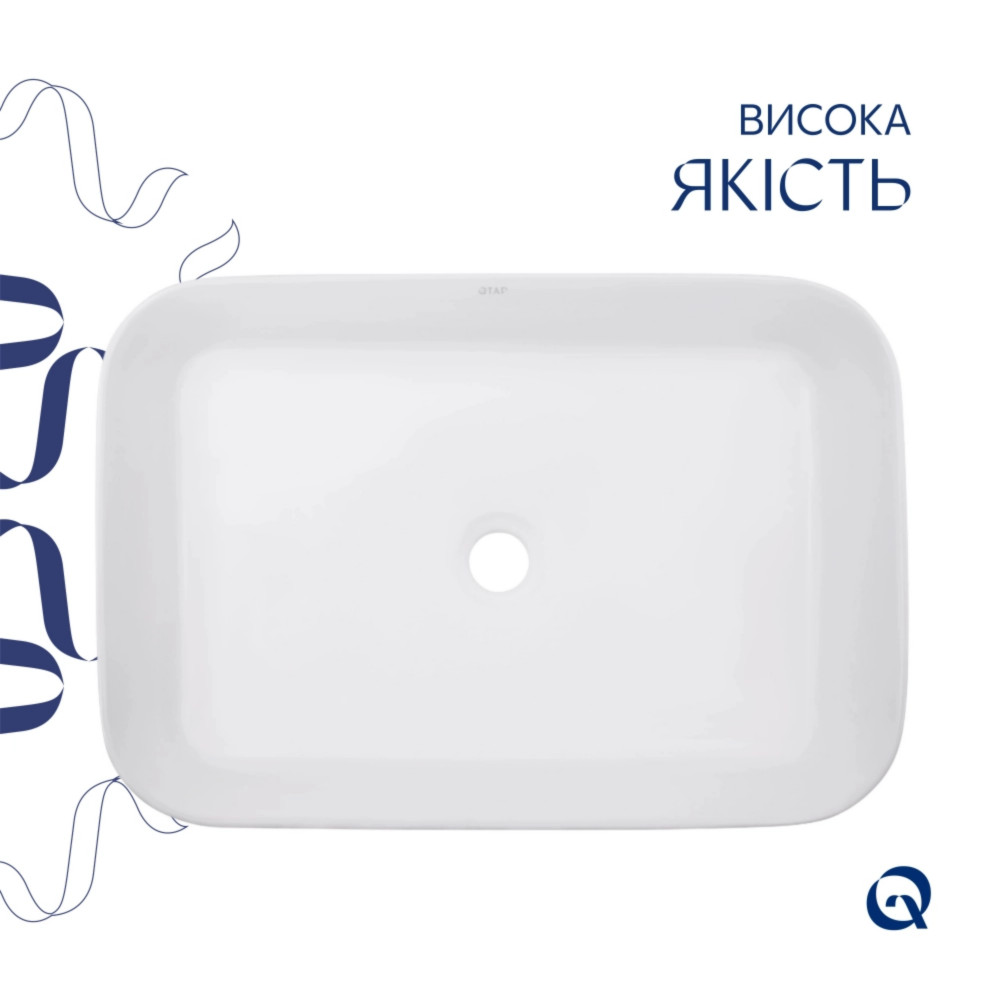 Опис Комплект Qtap Virgo N: Раковина накладна 560x380x130 мм, White, прямокутна + Донний клапан Pop-up PU02