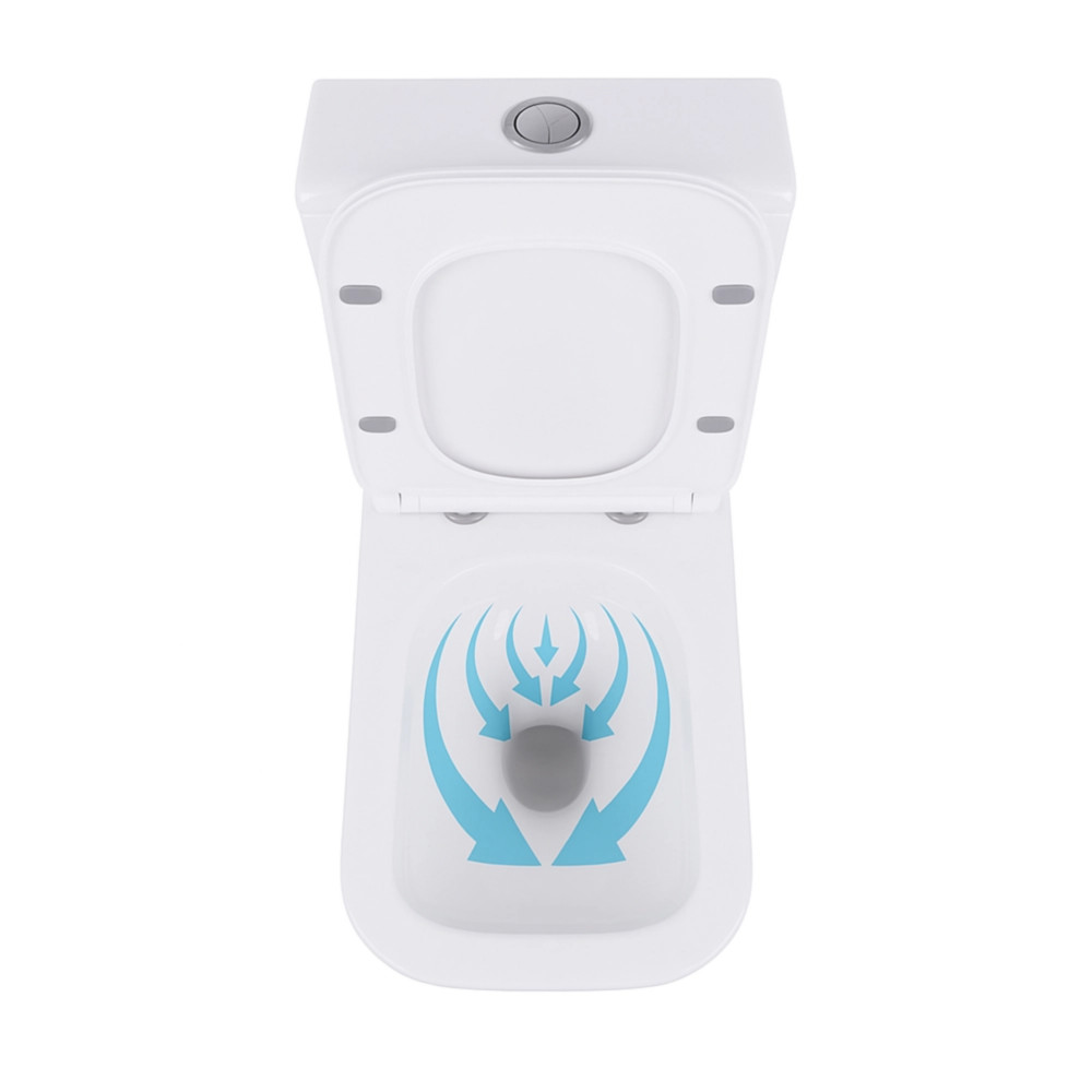 | Зливний вихід | Отвори біля основи безободкової чаші з технологією змиву Rimless |
