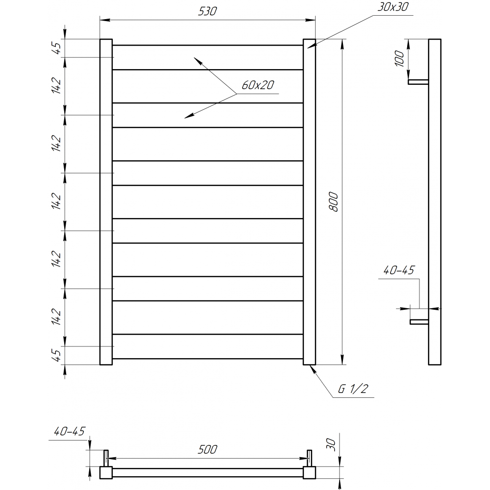 Дизайнерська сушка для рушників, універсальна з нержавіючої сталі, підходить для водяного та електричного підключення (тен).