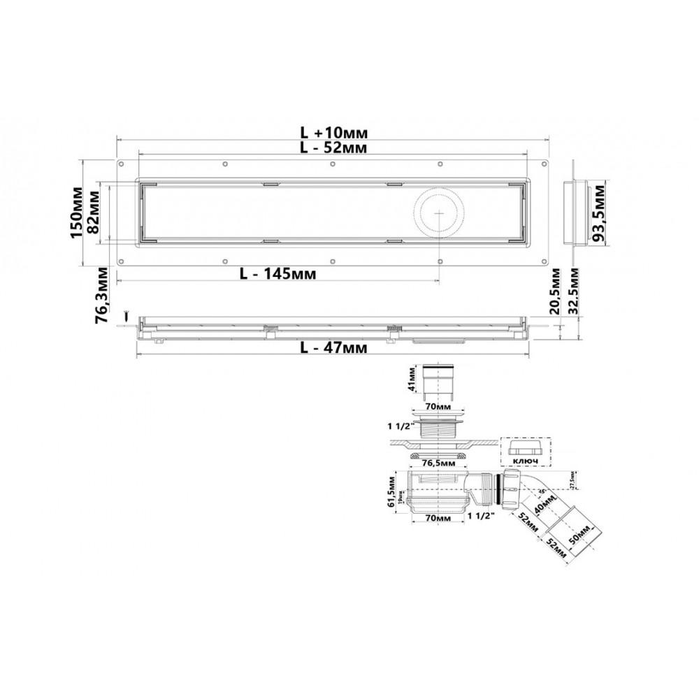 Опис Злив в підлогу ПРЯМОКУТНИЙ 700мм CD700-B-NT + сифон CD-HC26-65