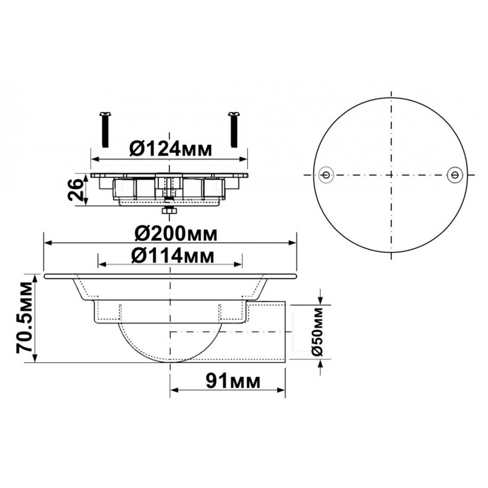 Опис Злив у підлогу з ABS-пластику (круглий/120 мм/вихід - 50 мм) USG3SS