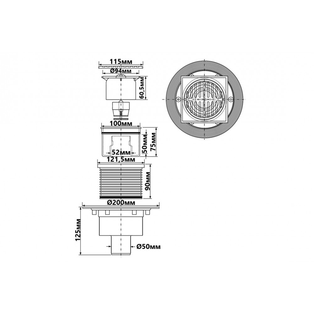 Опис Злив у підлогу з клапаном 50 мм HCFG3V-50